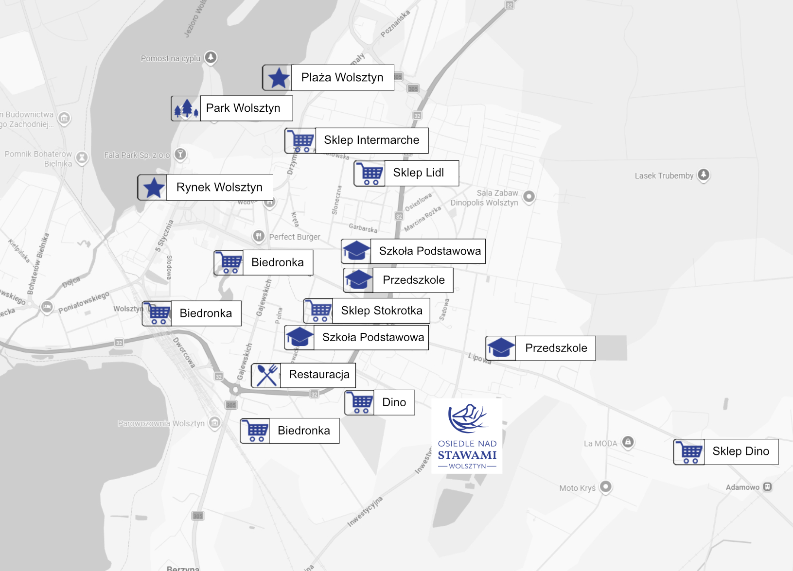 Tuż obok inwestycji znajdują się piękne tereny spacerowe oraz stawy dla mieszkańców. Pobliskie Jezioro Wolsztyńskie pozwala na żeglugę, a bliskość szlaków biegowych i spacerowych sprawia, że Wolsztyn jest miejscem zawodów triathlonowych.